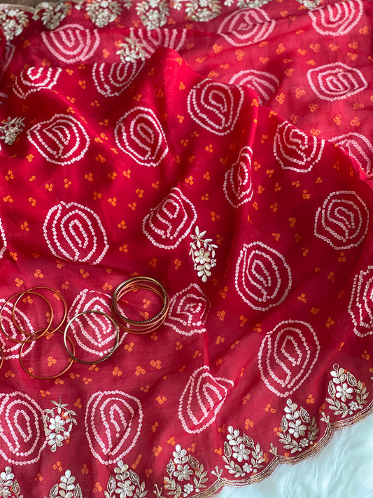 Red Kundan meena dupatta